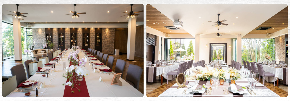 出雲記念館では、ゲストの人数やスタイルに応じて選べる2つの披露宴会場が用意されています。