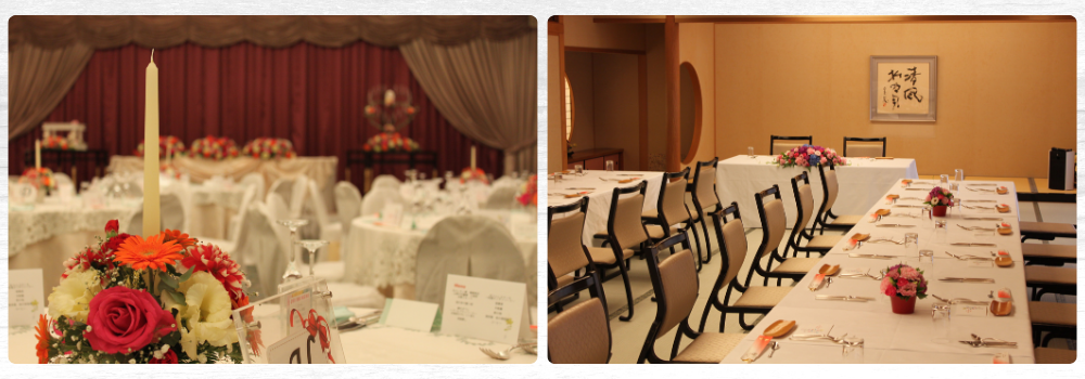 一方、和の趣を大切にした畳敷きの会場では、ご年配のゲストにも喜ばれる落ち着いた祝宴が叶います。洋・和、どちらのテイストにも対応できる柔軟さと、少人数から大人数まで幅広く対応可能な空間設計が魅力。