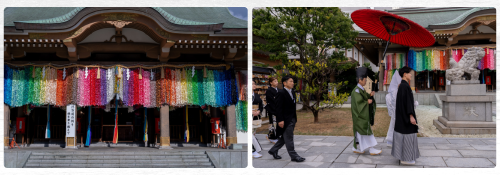 【佐佳枝廼社】色とりどりの折り鶴が彩る、福井の中心で叶える和の結婚式